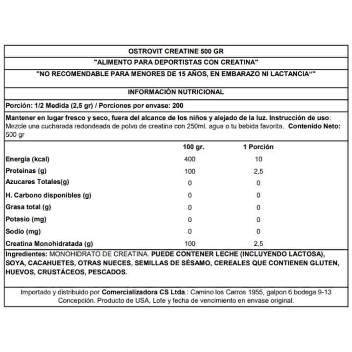 OstroVit Creatina Monohydrate Sabores 500gr